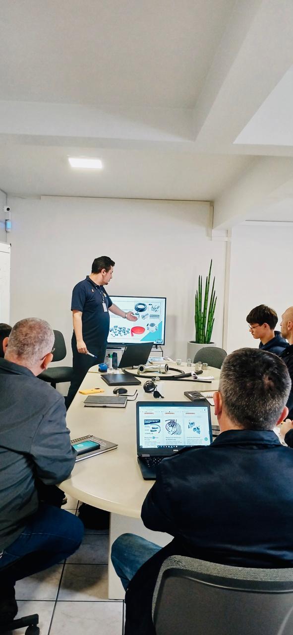 No dia 08 de setembro de 2025, Thiago nosso vendedor externo, ministrou para a equipe comercial da FHP um treinamento técnico com foco em mangueiras, terminais, conexões e padrões de roscas.